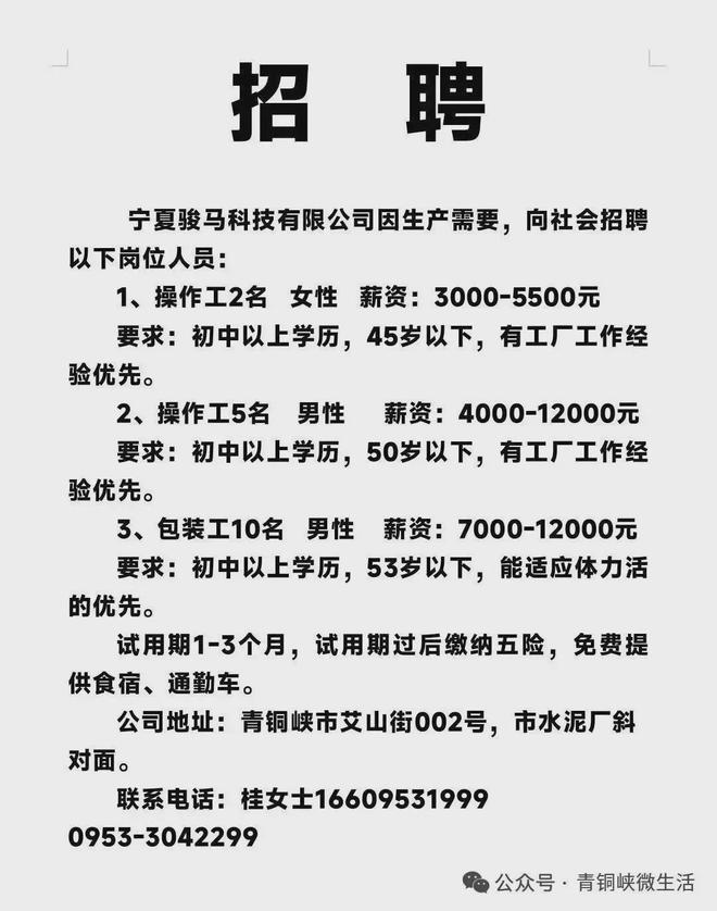 【招聘】青铜峡申通快递现招聘以下人员1、快递员2名,要求年龄45岁以下,能吃苦有责任心,2、分拣集包员2名,要求:女性,年龄40岁以下,能吃苦,有责任心,工资及待遇面议,联系电话: